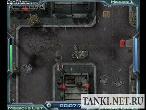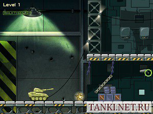 Нажимаете кнопочки-стрелки, далее "кликаете" номер уровня. Танк проводит разведку в промзоне, с целью провести зачистку на действующем оружейном производстве, захваченном террористами-роботами. Танк мчит напролом, круша гусеницами бочки и ящики. Роботы-снайперы устроили засады по всей территории, подкрадываясь снизу и сверху, ожидая в закоулках завода. Неожиданные выстрелы можно ждать отовсюду. Стреляете по врагу, а также сбиваете звездочки, дополнительные снаряды и аптечки для ремонта танка. Как только добираетесь до портала - EXIT, жмите GARAGE для восстановления танка, пополнения боекомплекта. Нажав PLAY NEXT, начинаете следующую миссию. Если танк подстрелят, то нажимаете R (restart) и ПРОБЕЛ.
